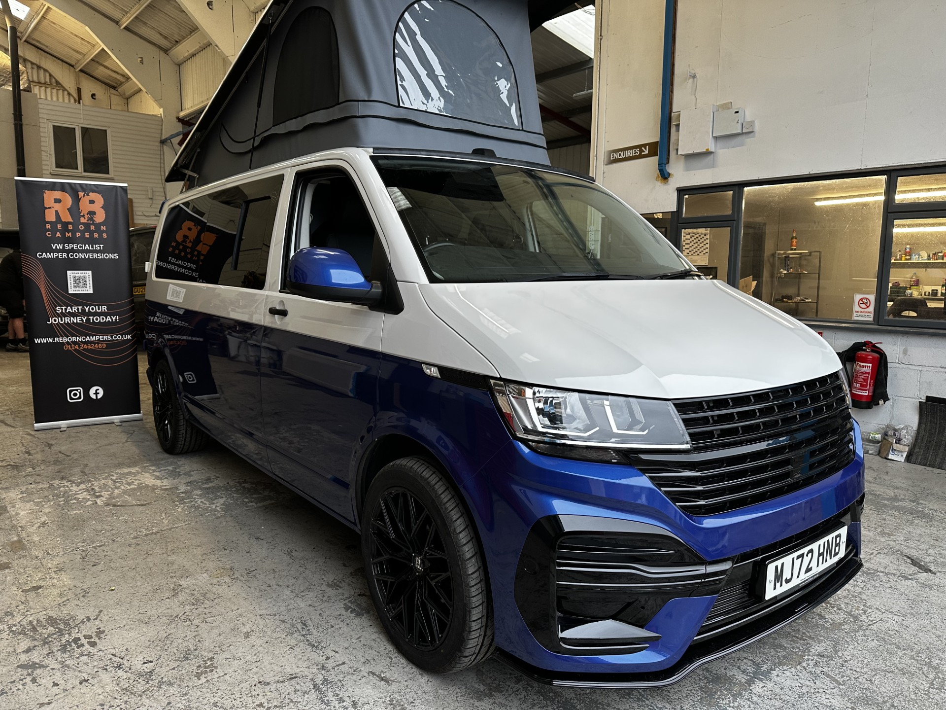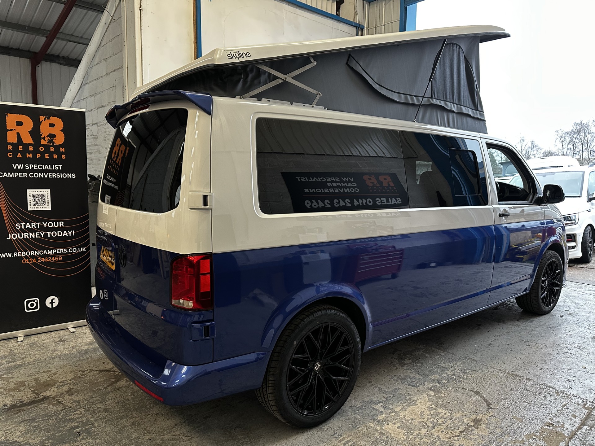 Reborn campers are delighted to offer for sale this newly converted VW Transporter T6.1 Reborn camper finished with a two tone colour scheme and leighton LV-R front bumper upgrade