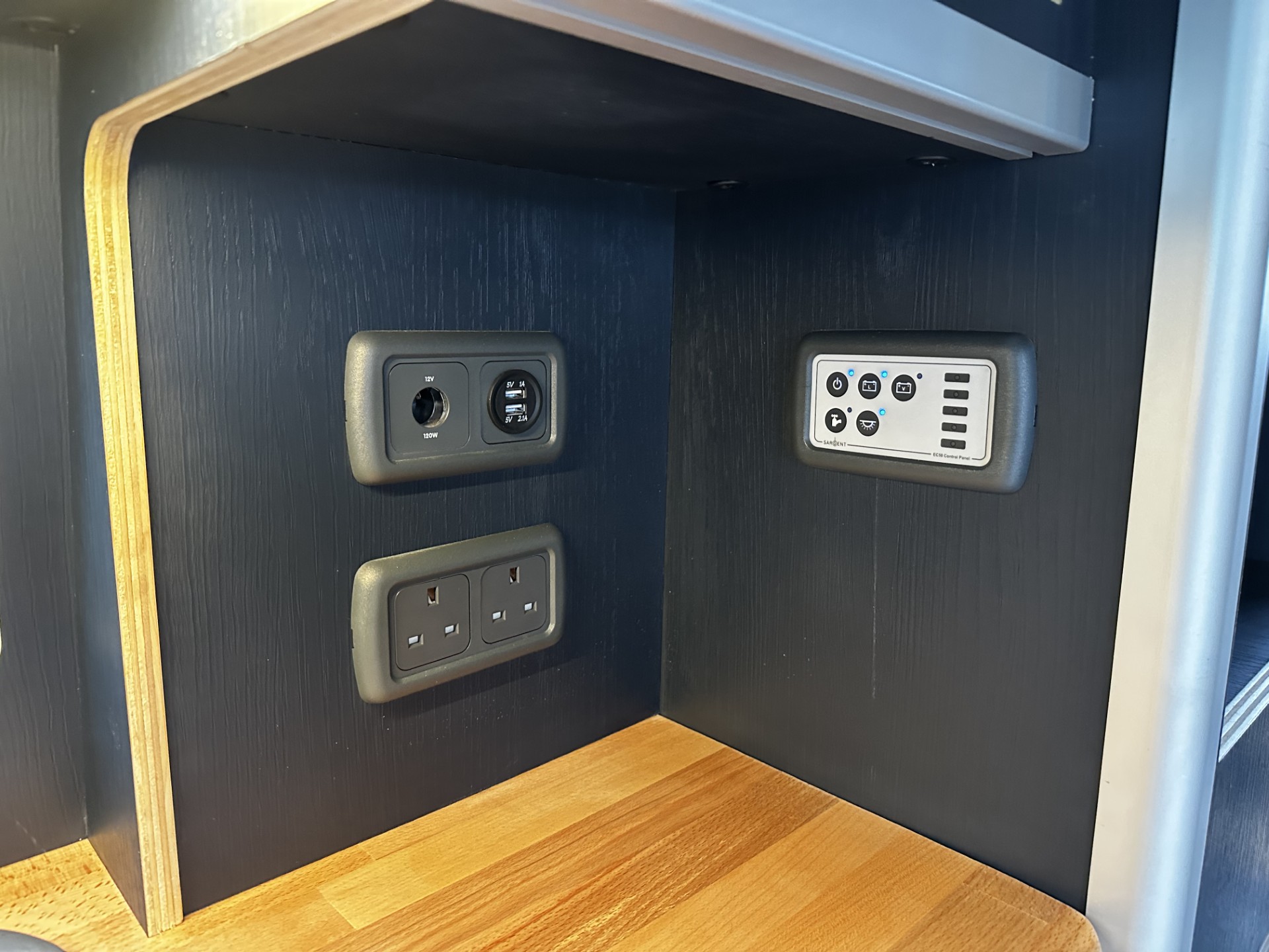 the camper is powered by a ec155 Sargent unit with 100ah leisure battery and 240v hook up located next to the battery under the bonnet.